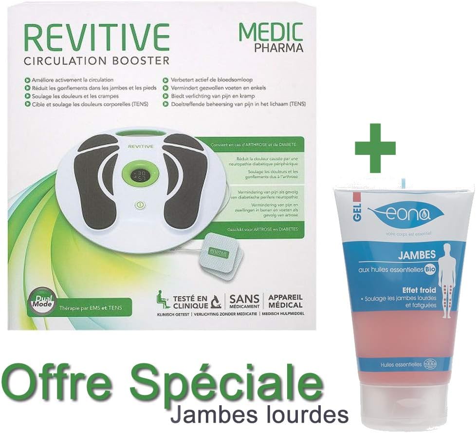 Appareil circulation sanguine jambes. Le revitive est un appareil de stimulation circulatoire qui améliore peu à peu la circulation veineuse dans les jambes et les pieds. Celle ci génère des impulsions électriques qui stimulent les nerfs dans le corps pour entrainer la contraction. Il réduit les douleurs au niveau des jambes et des pieds réduit les gonflements dans les pieds et les chevilles soulage les crampes et améliore active.